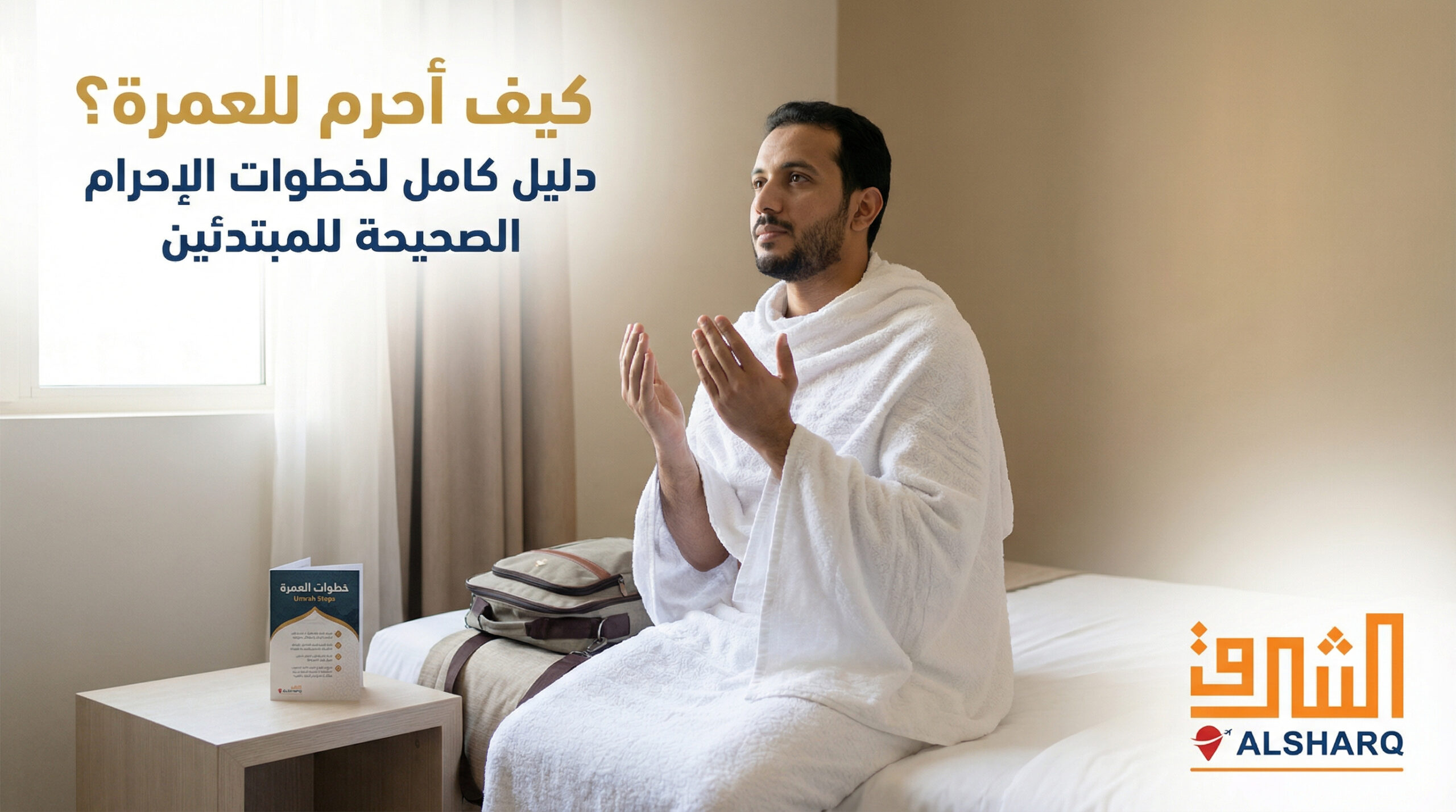 العمرة من أعظم الرحلات التي يمكنك القيام بها في حياتك، وهي رحلة روحانية تجمع في معانيها العديد من المشاعر الروحانية، بداية من الإحرام. فإن فهم كيف أحرم للعمرة أمر ضروري للغاية حتى يتمّ المسلم هذه الرحلة على أكمل وجه، لذا في هذا الدليل سوف نتعرف على كيف أحرم للعمرة بالتفصيل. لا تنسى ان تبحث في برامج العمرة في شركة الشرق